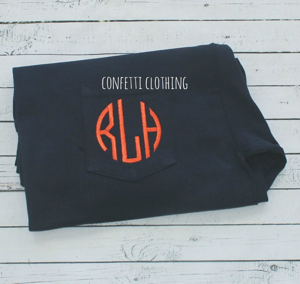 This monogram initials or name design on a pocket tshirt offers a luxurious and eye-catching look. The embroidery shirt gives an opulent aesthetic with its beautiful colors, and articulated design. Perfect for special occasions or everyday wear.
